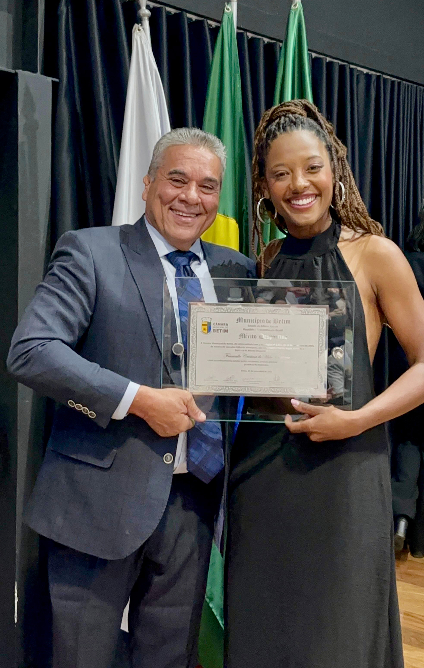 Destaque. A profissional de educação física Francielle Mello foi homenageada com o título de Mérito Desportivo. Na foto, ela recebendo a honraria do vereador Gilberto Vianópolis.